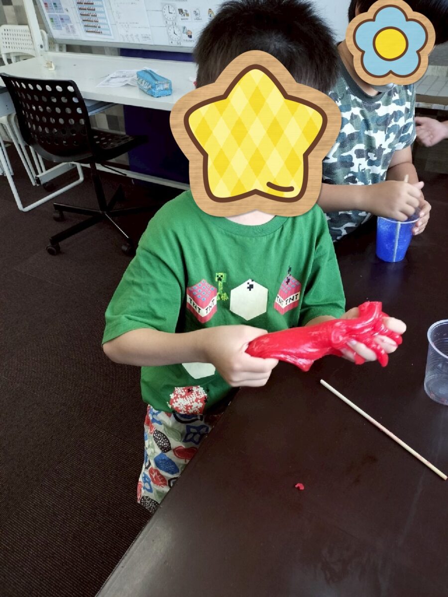 良い感じにトロトロ感があるスライムができ、みんなでキャーキャー言いながら、大盛り上がりで遊びました!