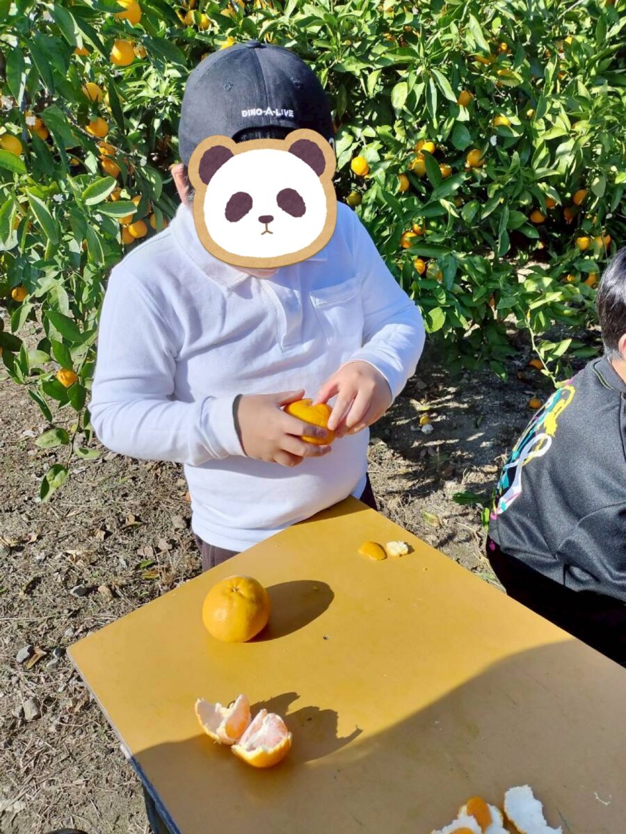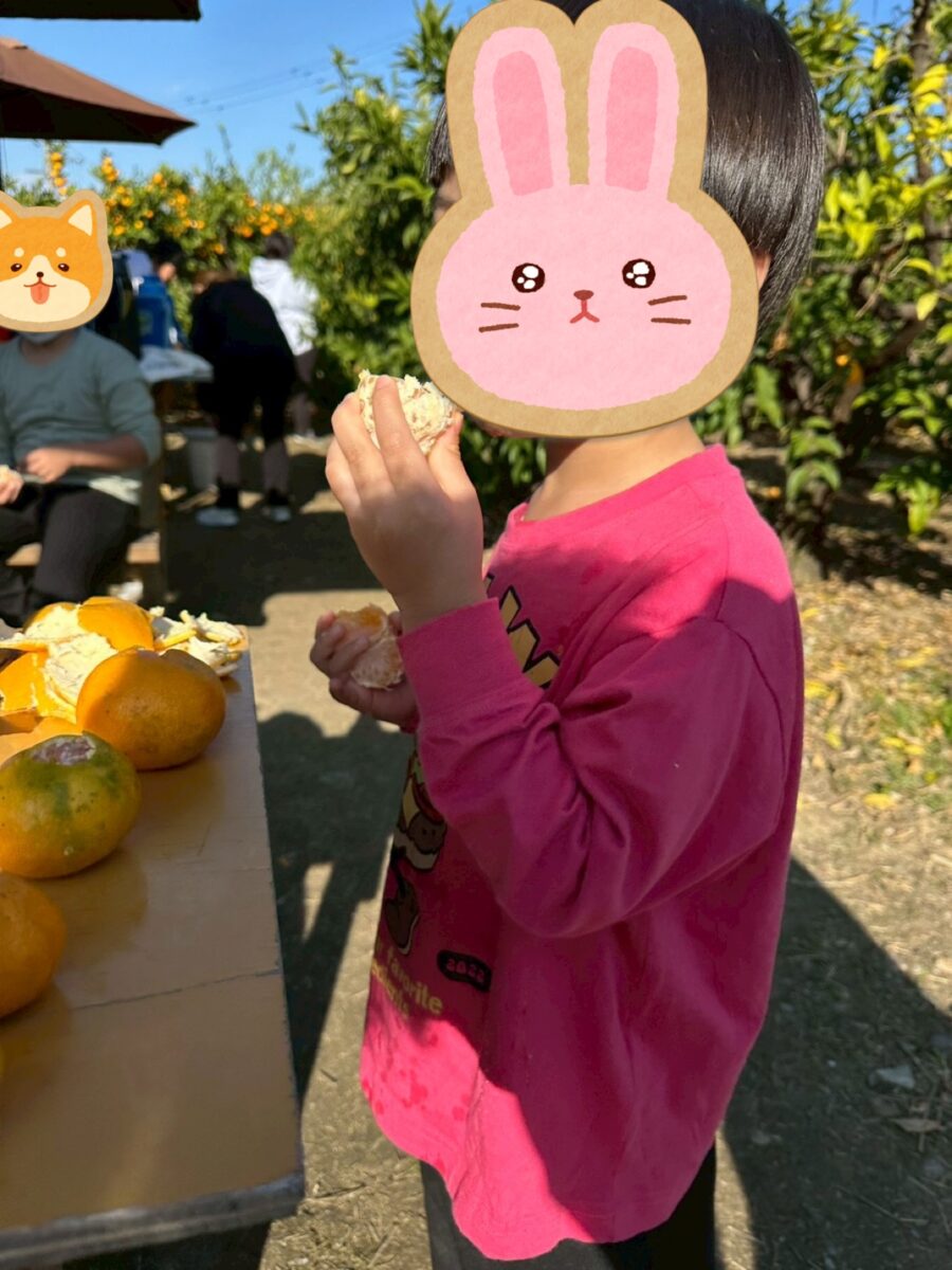 今年も、毎年恒例のみかん狩りに、土生事業所と合同で行きました。朝から、みんなワクワクしながら、「今日は、みかんを50個食べる!」と、意気込んでいました。そしてお昼過ぎから出発!晴天にも恵まれ、ぴかぴか光るオレンジ色のみかんに囲まれ、思う存分みかん狩りを満喫してきました!もちろん、狩ったみかんは一つ残らず、しっかり食べてきました。