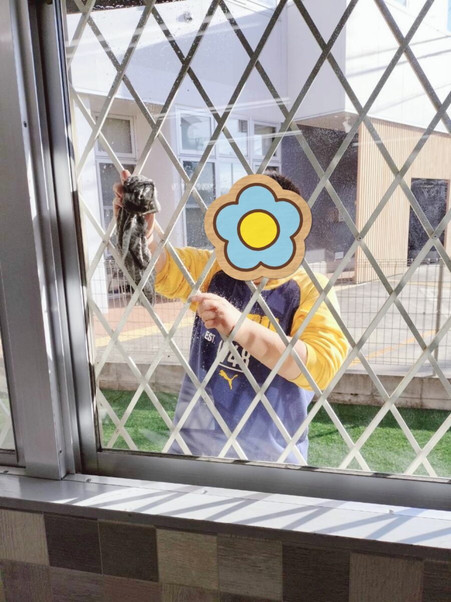 年度末に事業所の大掃除をしました!良い天気の下、まずは自分たちの事業所の周りのゴミ拾いをしました。その後、事業所の窓や靴箱や棚の拭き掃除など、役割分担を決めて、楽しみながらも責任感を持って取り組むことができました。事業所をきれいにして、気持ちよく一年の締めくくりができました!