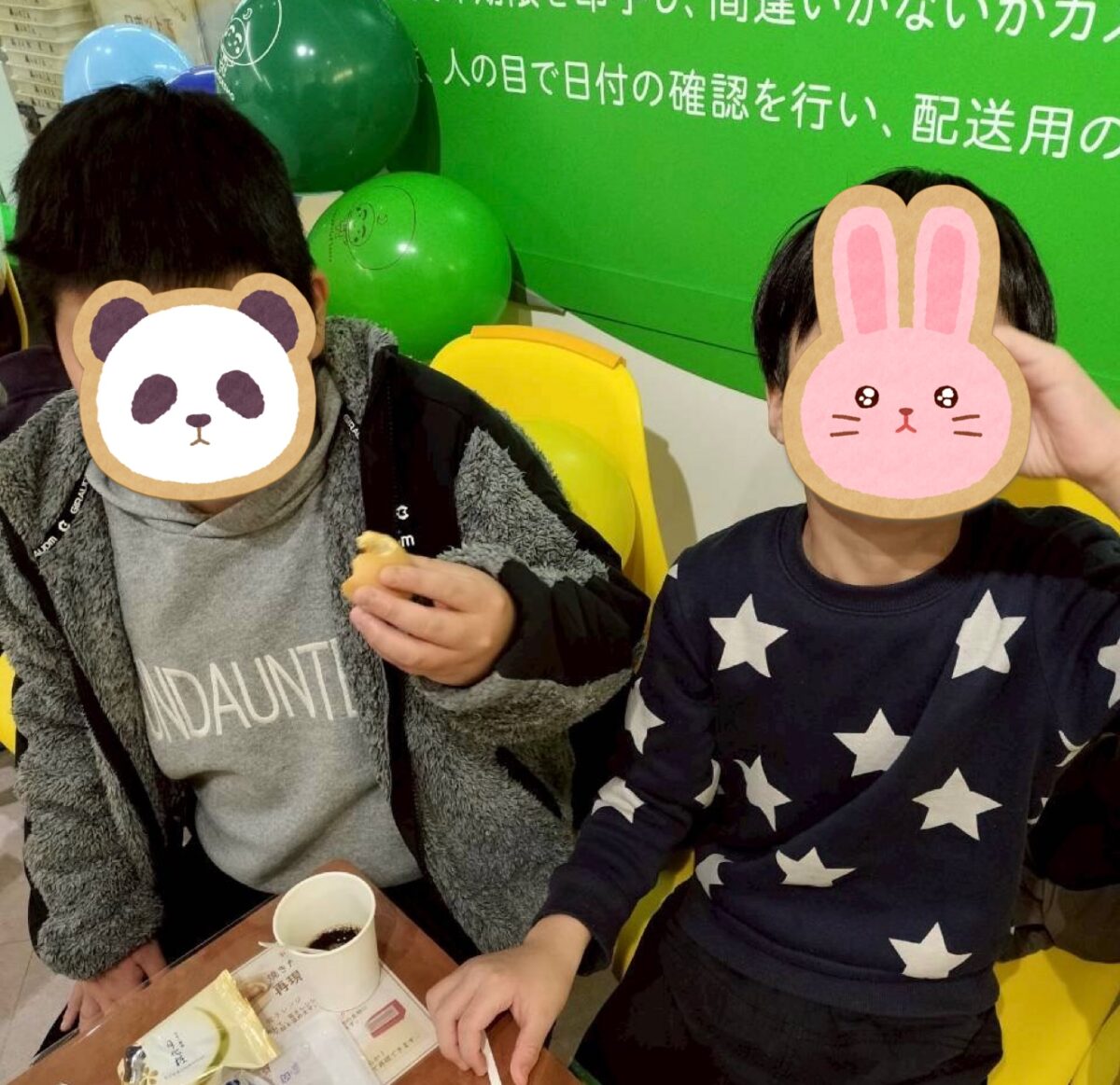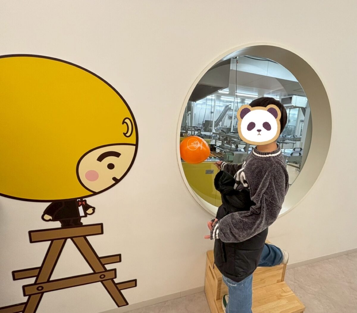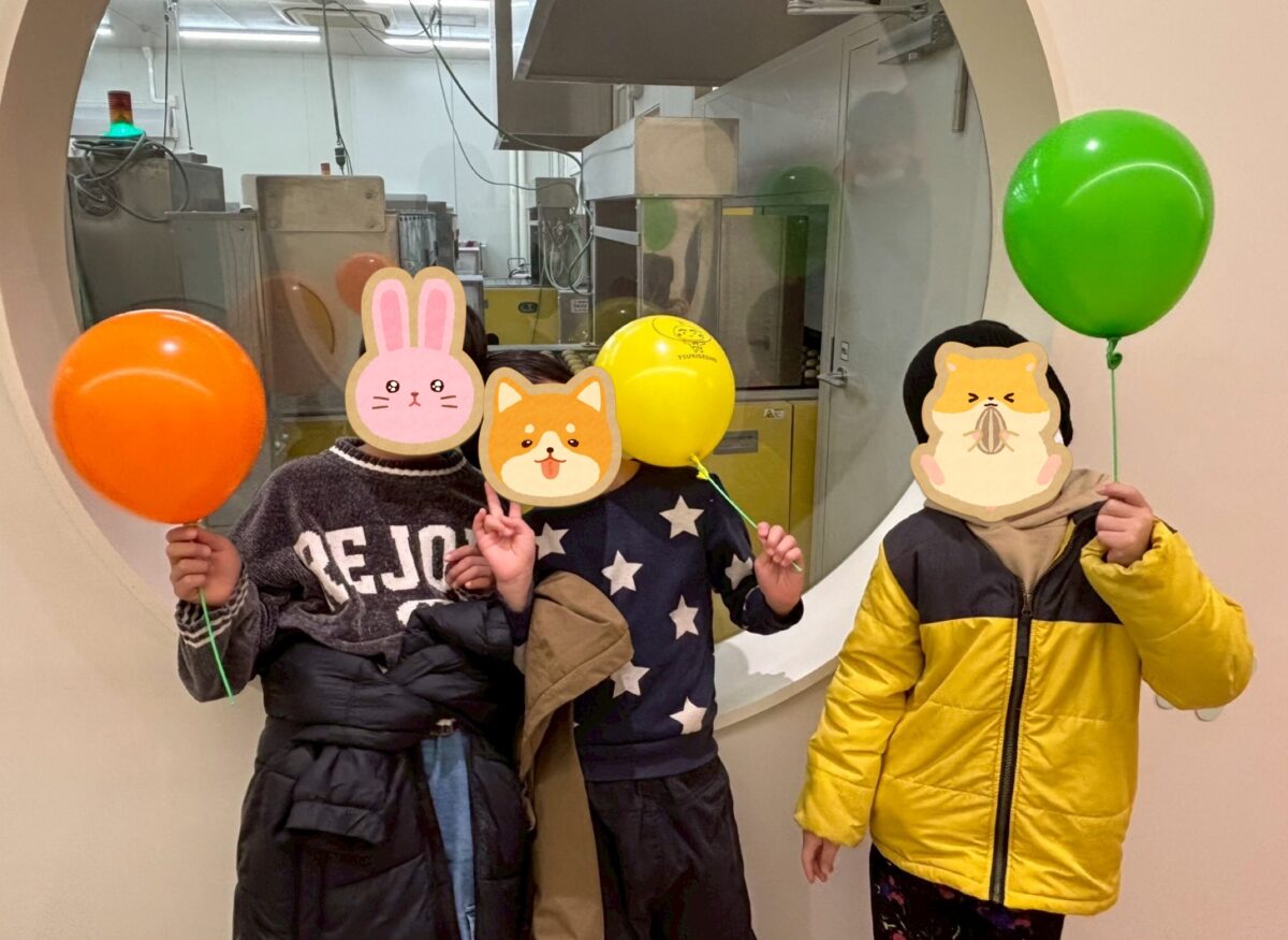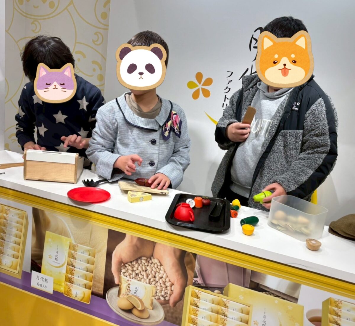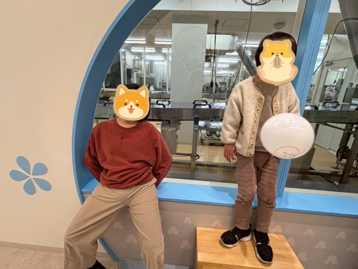 公園へ行く予定だったのですが、あいにくの雨模様ー。みんなで話し合って、工場見学もできて、できたてほやほやの月化粧が食べられる、月化粧ファクトリーへ行くことになりました!