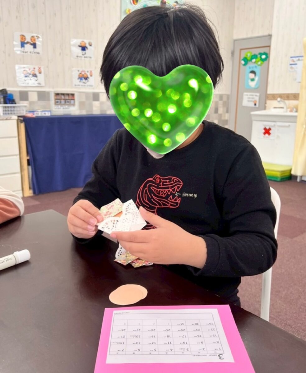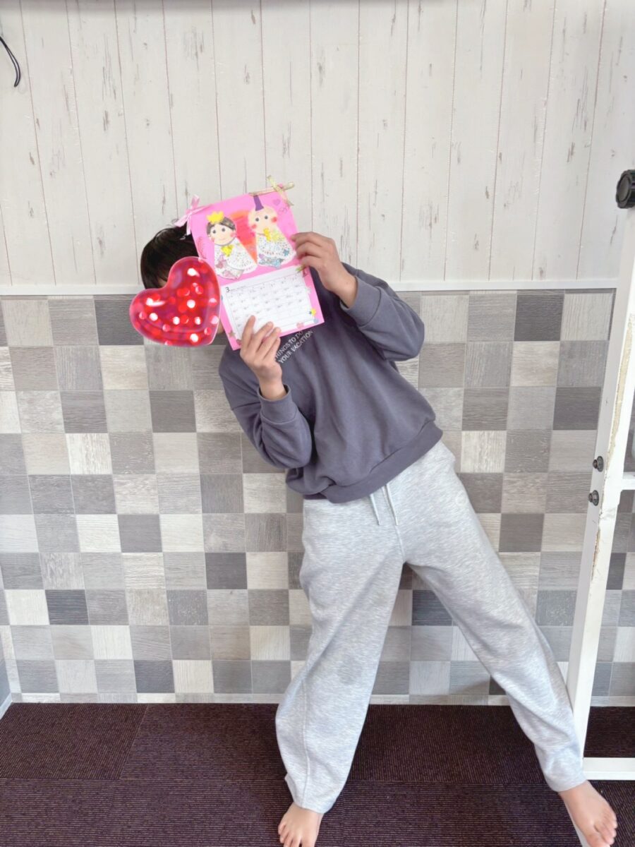 3月と言えばひな祭りです。お内裏様とお雛様のカレンダーを作りました!みんな、それぞれ工夫を凝らして、個性あふれるカレンダーができ上りました!